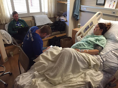 On Saturday my contractions started picking up again. My nurse kept coming in to adjust my monitors and would see exactly how painful these contractions were and coming on about every 6-7 minutes. Jason was with me and we were watching Agents of Shield, pausing so that I could breathe. My nurse came back in and said my Dr was coming to check me.. I was a 7.5!! Once the decision was made to move me to L&D, they moved fast. A minute later there was a gurney by my bed for me, nurses were packing all of my stuff, and Jason was following close behind as they wheeled me to my delivery room (even though I would be delivering in the OR.) I met my nurse in L&D and we started talking about what to expect, when I would like my epidural etc. I requested the epidural soon as I knew they needed it in in case of an emergency C-Section.